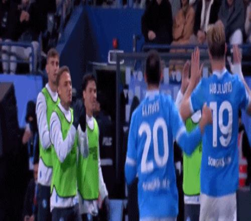 打進精彩、關鍵的進球之后,霍伊倫一路小跑,與那不勒斯替補球員慶祝。隊友們紛紛涌上,慶祝霍伊倫的完美表演。10天之前,霍伊倫用梅開二度幫助那不勒斯擊敗尤文,這場意超杯半決賽,霍伊倫再次成為英雄。