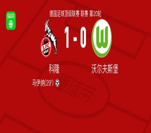 北京時間1月31日德國足球頂級聯賽 聯賽 第20輪,科隆主場對陣沃爾夫斯堡。科隆馬伊納破門。最終比分科隆 1-0 沃爾夫斯堡。