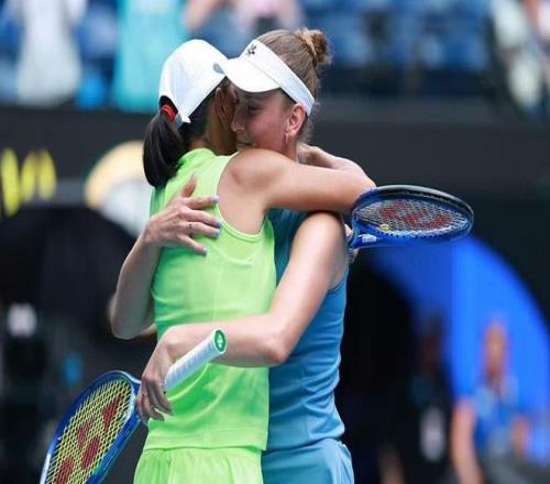 張帥從看臺上要來了一面國旗和梅爾滕斯一起展示慶祝,她隨后讓梅爾滕斯去看臺拿了一面比利時國旗,兩人身披各自的國旗慶祝。看臺上,張帥媽媽見證了女兒在澳網書寫奇跡。媽媽是女兒最大的支持者,見證著女兒從低谷到巔峰,又陷入低谷,如今重新攀上巔峰。張帥在2023年因為傷病經歷了低谷期,一度考慮是不是要退役。有一段時間,張帥為找到合適的雙打搭檔犯愁。梅拉德諾維奇在關鍵時刻拉了張帥一把,幫助張帥迎來了復蘇。這個賽季,梅爾滕斯和張帥再次聯手,兩人實現了雙贏。