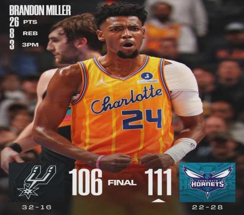 黃蜂榜眼布蘭登-米勒跟文班是同屆新秀,今天米勒風頭蓋過文班:投籃21中7,三分9中3,罰球9中9,得到26分8板2助1斷1帽。得分全場最高,正負值+13全場第二高。跟文班對位的迪亞巴特,拿到12分10板6助2帽,正負值+19全場最高。