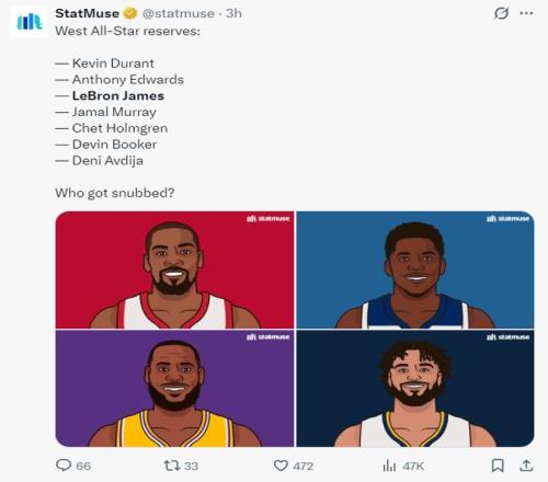 這場比賽之前,NBA官方宣布了西部全明星替補:杜蘭特、華子、詹姆斯、穆雷、霍姆格倫、布克、阿夫迪亞。換言之勒布朗-詹姆斯連續22年入選全明星。