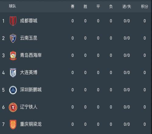 距開賽36天!中超積分榜:蓉城天胡開局,申花墊底,海港國安5分